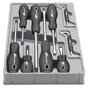 The Ingersoll Rand® screwdrivers exceed ANSI specifications. They feature premium trilobular handles for maximum comfort and grip. Shafts are constructed of (SVCM) Silicon Vanadium Chrome Magnesium for added torque. Large size drivers have hex bolsters and sizes are marked on the handle caps for easy size ID.