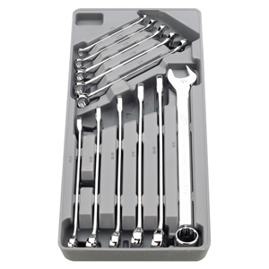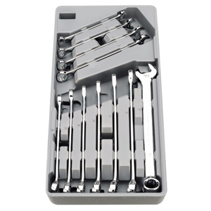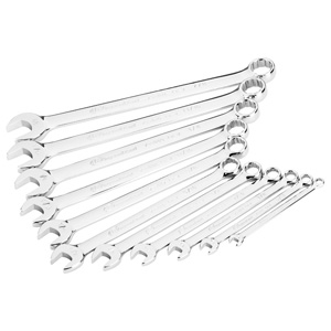 Ingersoll Rand combination wrenches exceed industry standards for length, torque and hardness. Each wrench is constructed of premium chrome vanadium steel with a fine mirror finish. Box ends have a 15-degree offset for better reach and fewer bruised knuckles. All IR wrenches are extra-long pattern for added reach and torque.