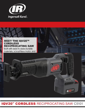 The Ingersoll Rand® C5101 IQV20™ Cordless Reciprocating Saw is the next generation of cordless cutting tools, cutting through metal 20% faster than leading cordless competitors. A powerful brushless motor and premium gearing extend tool life without sacrificing cutting speed at 5% lighter than the leading cordless competitor, the C5101 Reciprocating Saw allows the operator to work effortlessly through the toughest jobs without stalling or fatigue.