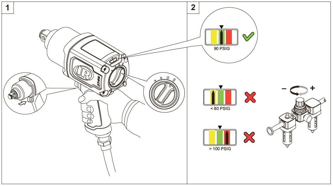 • Operating the wrench at the optimum pressure level maximizes the life of the tool, saving you money
