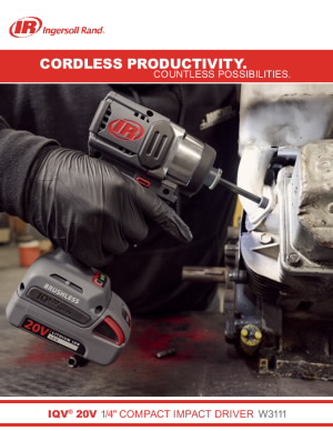 Ingersoll Rand® grows its IQV20™ system with the W3111 IQV20™ 1/4" Compact Impact Driver. Its brushless motor delivers up to 4,200 in-lbs. of breakaway torque to quickly complete demanding applications. A compact form factor with 5.2" tip-to-tail length and weight under 2.3 lbs. provide excellent control and maneuverability in tight workspaces.